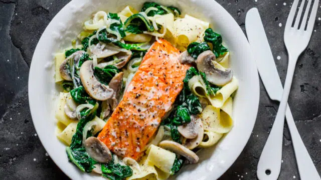 Tagliatelles au saumon et champignons