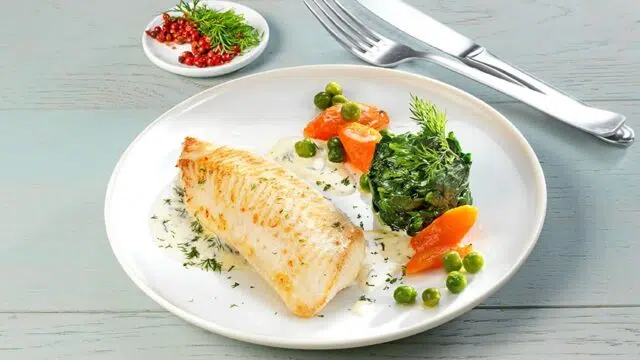Aiglefin aux légumes de printemps et sauce à l’aneth