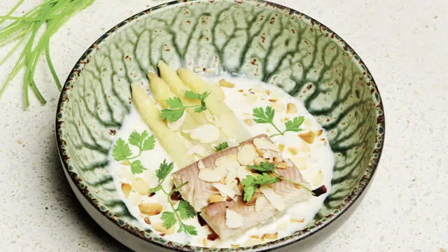 Crémeux d’asperge et sa truite fumée
