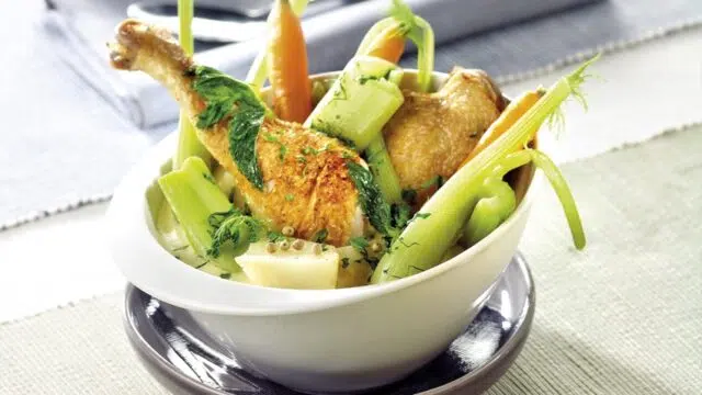 Fricassée de cuisses de volaille, garniture grand-mère