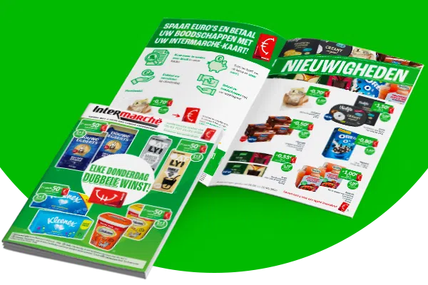 Elke week staan onze folders vol nieuwe promoties. Bovendien belonen we onze trouwe klanten met maandelijkse aanbiedingen die enkel beschikbaar zijn voor houders van een Intermarché-kaart. Blader hier door onze folders om niets te missen.