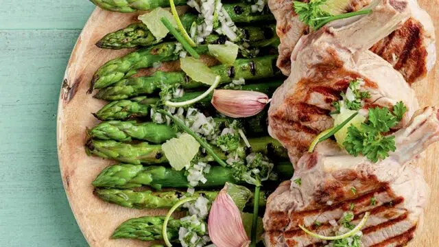 Kalfskotelet, groene asperges & vinaigrette