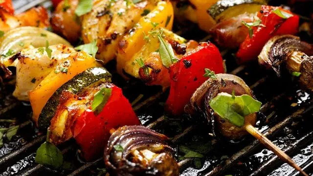Brochettes van kleurrijke groenten