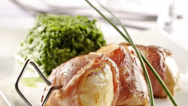 Brochettes van sint-jakobsnoten met gerookt spek