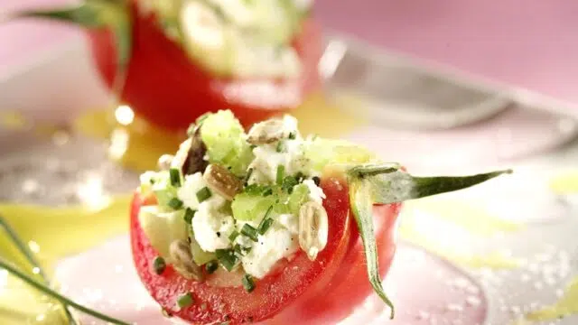 Kerstomaten met geitenkaas en selderij
