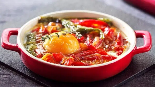 Gegratineerde eiernestjes met paprika