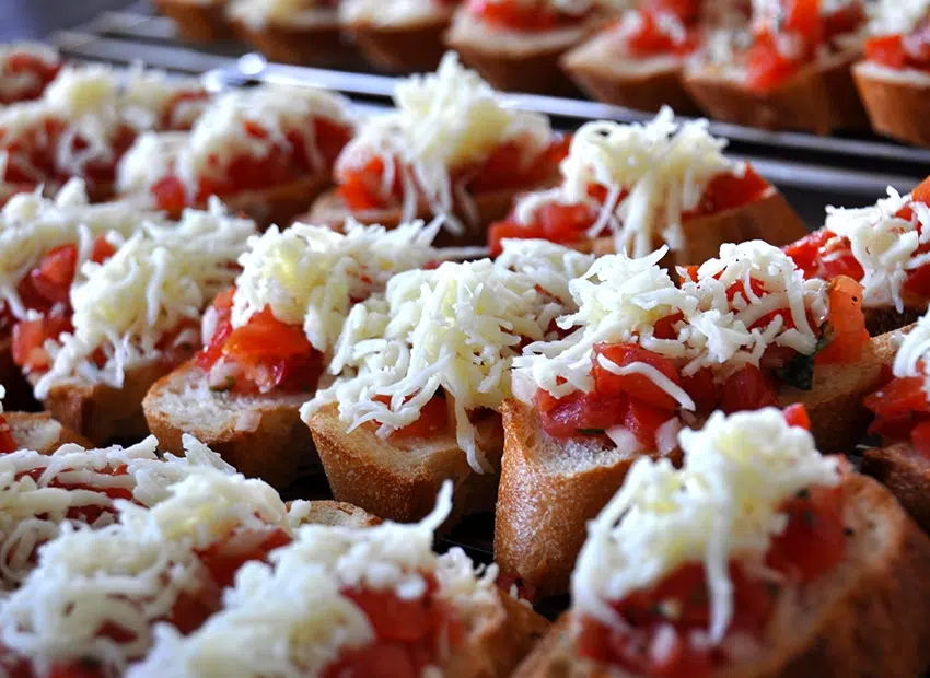 Bestrooi eventueel met geraspte kaas en leg iedere bruschetta nog eventjes op het barbecuerooster.