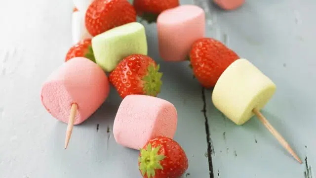 Snij het stokbrood in dikke sneetjes en rooster ze op de barbecue.