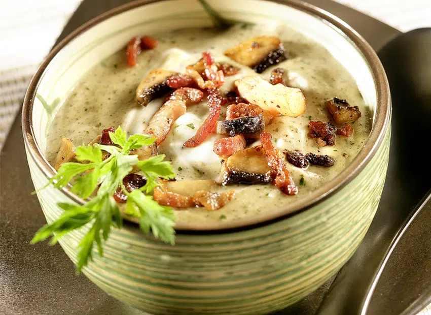 Met croutons van Saint Eloi en geraspte kaas van Pâturages wordt deze soep een volwaardig hoofdgerecht.