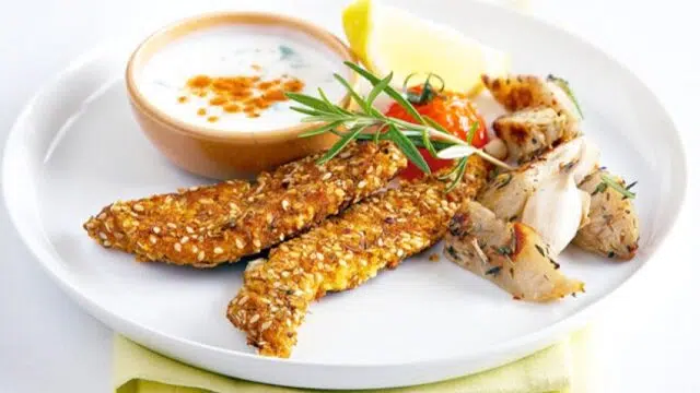 Bak de kipfilets in een hete pan met olie 7 minuten aan elke kant op laag vuur.