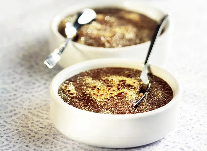 Chocolade crème brûlée is een heerlijke variatie op dit klassieke dessert.