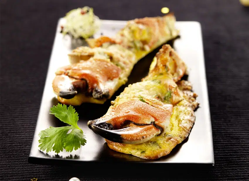 Maak de noordzeekrabscharen schoon en breek ze voorzichtig. Leg ze in een diepe ovenschotel.