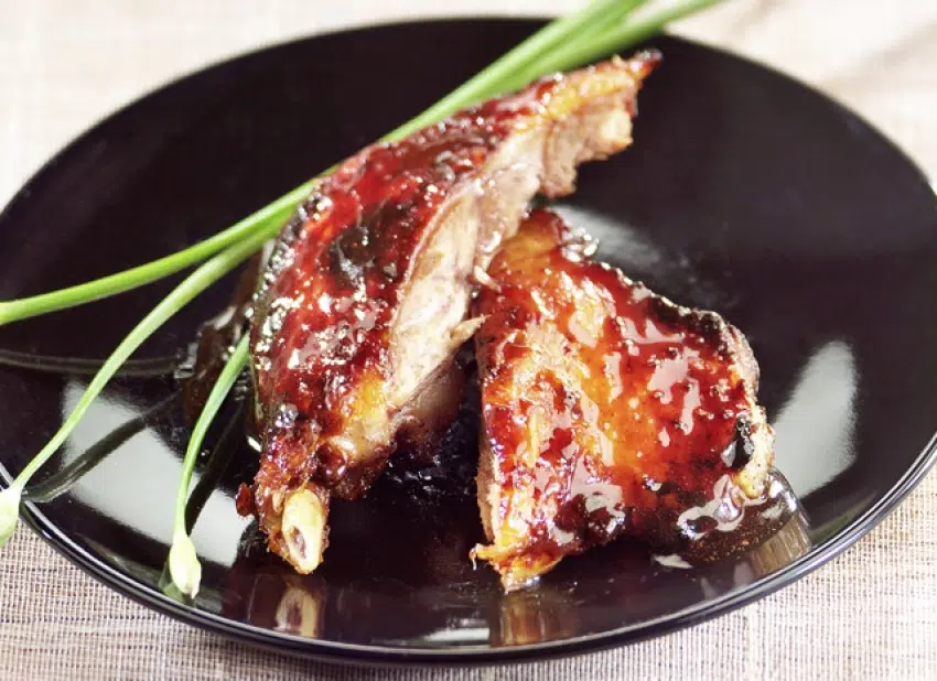 Doorprik het vel van de eend met de punt van een mes op verschillende plaatsen over het hele oppervlak. Leg ze in een ovenschotel en strijk ze royaal in met saus. Zet ze 12 uur koel.