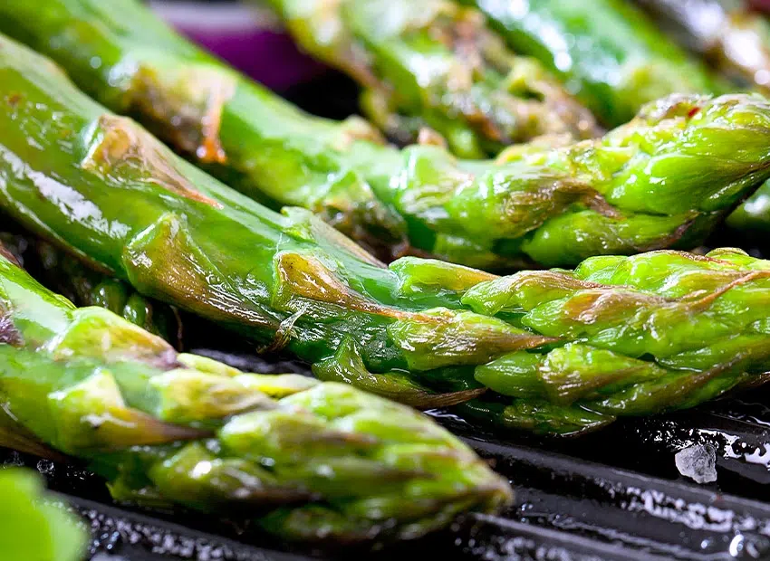 Voor vleeseters kunt u iedere asperge oprollen in een sneetje rauwe ham van Monique Ranou voor u ze op de barbecue legt.