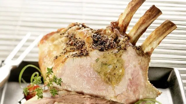 Haal de kalfsribben eerst door de bloem, dan door het ei, en ten slotte door het paneermeel. Bak ze vervolgens 1 minuut aan elke kant in een pan met olie, en voltooi de garing gedurende 6 minuten in een voorverwarmde oven op 180°C. Laat 5 minuten rusten.