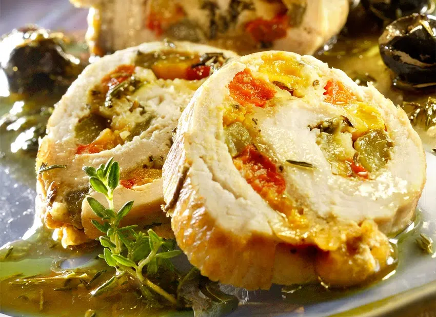Kalkoenrolletjes met 3 soorten paprika