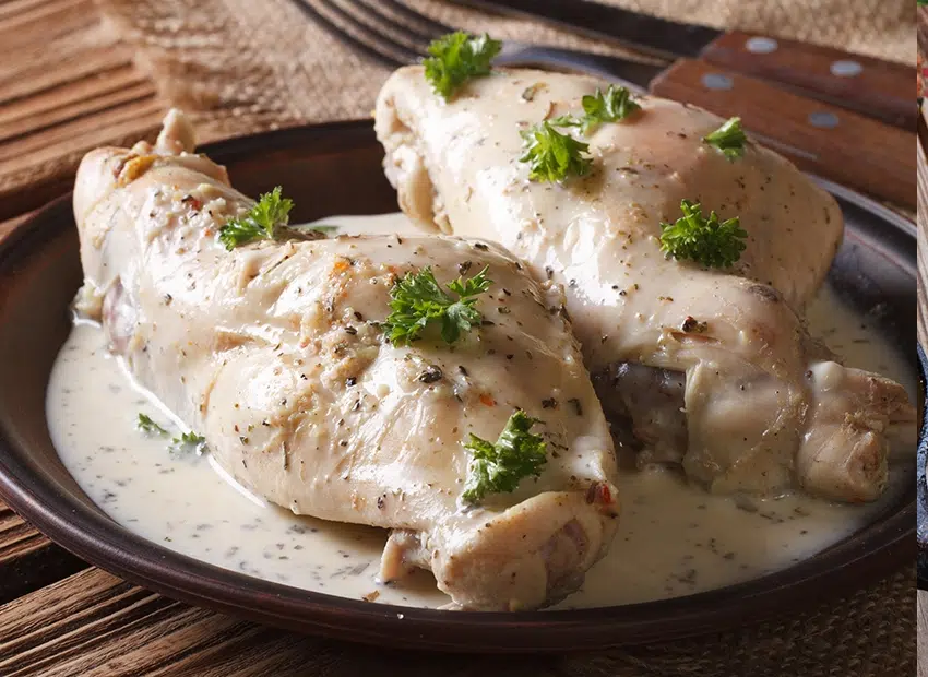 Het konijn is gaar als u het vlees er gemakkelijk kunt aftrekken met een vork.