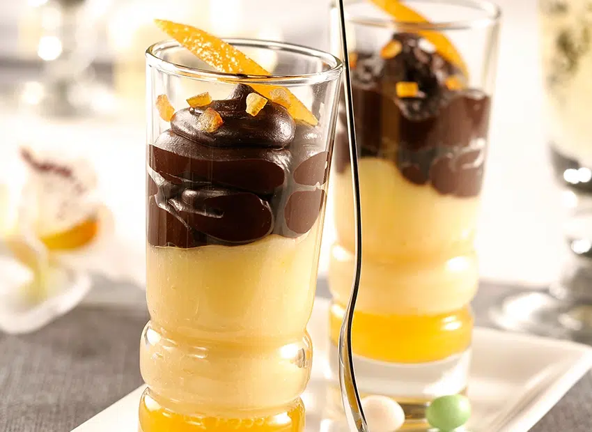 Deze lekkernij van sinaas-chocolade in een glaasje is een goddelijke combinatie van smaken. Serveer deze sinaas-chocolade lekkernij gekoeld voor een lichte, verfijnde smaakervaring. Eet smakelijk!