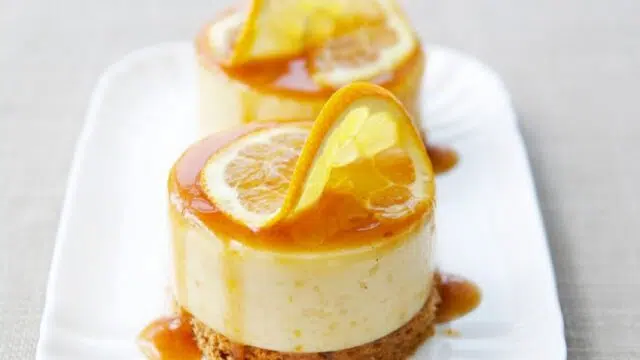8. Versier met blokjes sinaasappelschil. Bewaar in de koelkast.