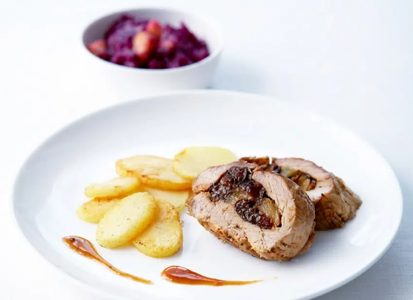Heerlijk met rode kool en gekookte of gesauteerde aardappels.