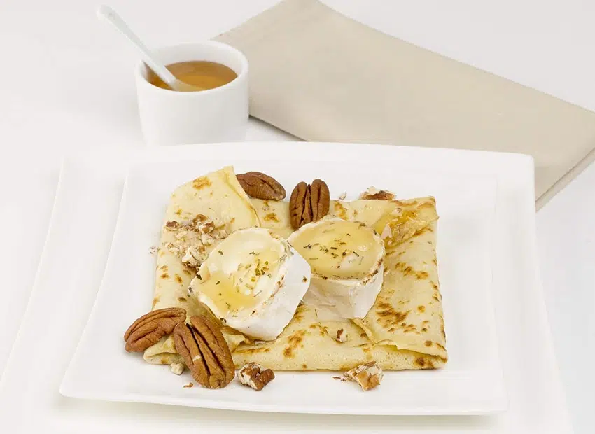 Deze pannenkoeken zijn perfect als brunch of dessert. De combinatie van romige geitenkaas, knapperige pecannoten en zoete honing zorgt voor een heerlijke mix van smaken. U kunt de vulling ook personaliseren door fruit, rucola of andere ingrediënten naar keuze toe te voegen voor een nog rijkere smaakervaring. Profiteer er!