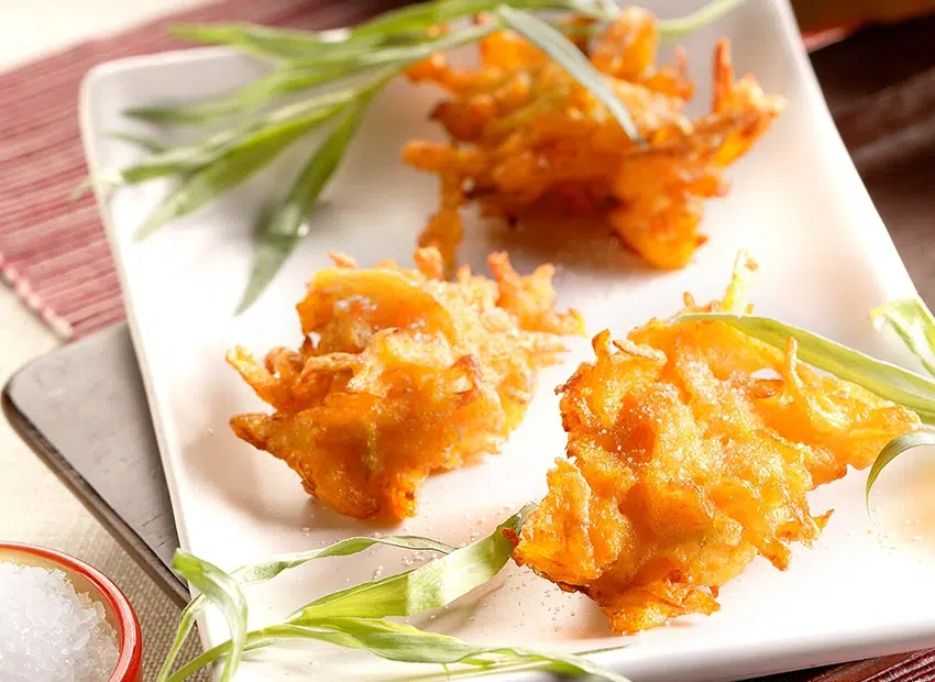 4. Verwarm de olie in een kookpot, neem een lepel pompoendeeg en laat dat in de olie zakken. U kunt 3 lepels deeg tegelijk bakken, maar hou ze wel goed gescheiden. Bak ze 2-3 minuten. Schep ze eruit met een schuimspaan, leg op keukenpapier en bewaar op zachte temperatuur.