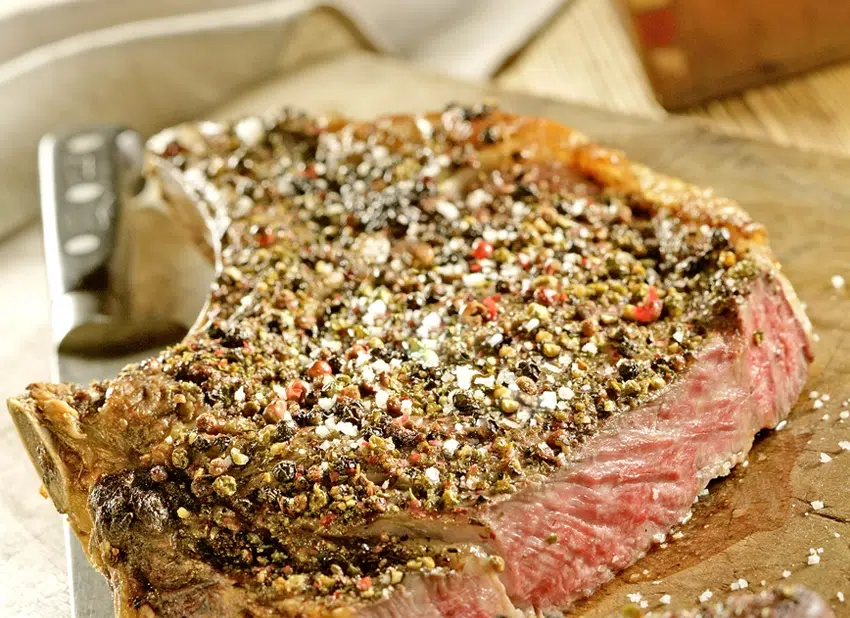 Haal de runderkotelet enkele uren voor het bakken uit de koelkast.