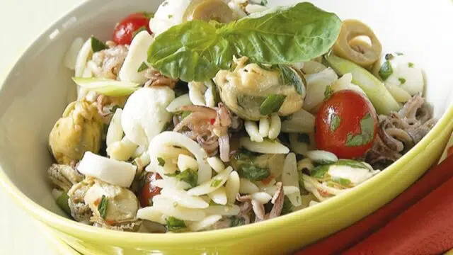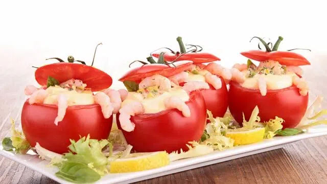 Tip: om het gerecht wat meer kleur te geven, kunt u rode, gele en zwarte kerstomaatjes gebruiken.