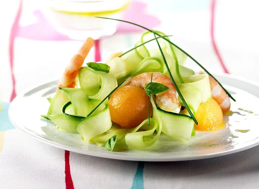 Tip: als u geen mandoline hebt om de komkommer tot tagliatelle te snijden, zal een dunschiller ook wel volstaan.