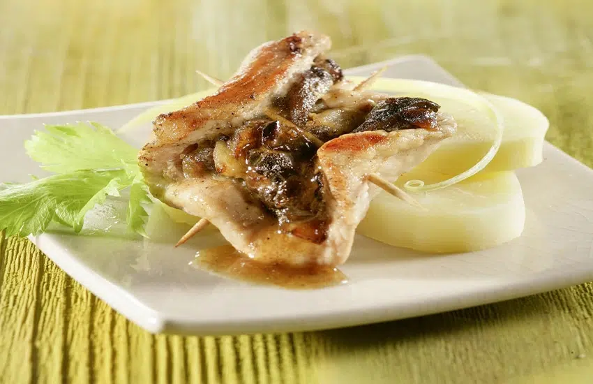 Verpak elk varkenslapje in plasticfilm en klop plat met een deegrol.