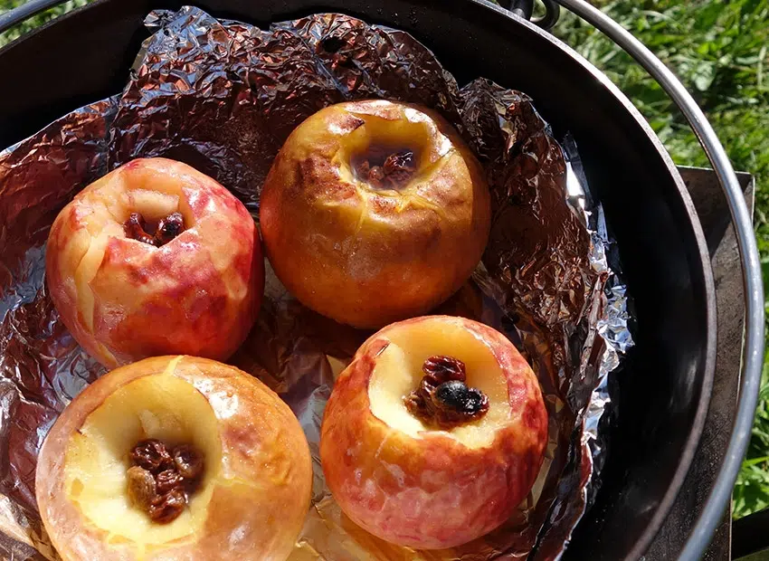 Leg een vel aluminiumfolie op het rooster van de barbecue, leg er uw gevulde appels op en laat ongeveer 40 minuten bakken.