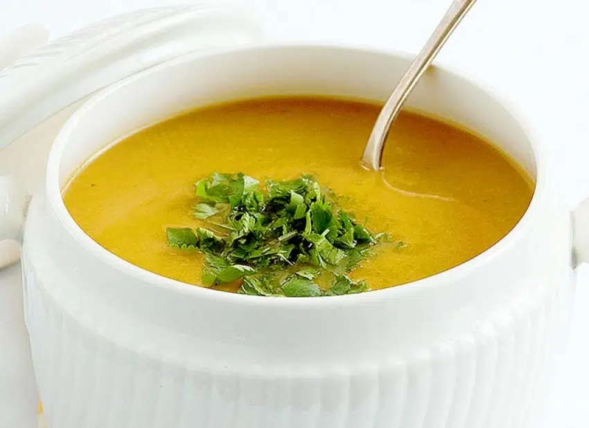 Serveer deze soep eens koud in de zomer met een garnituur van met limoensap fijngeprakte avocado.