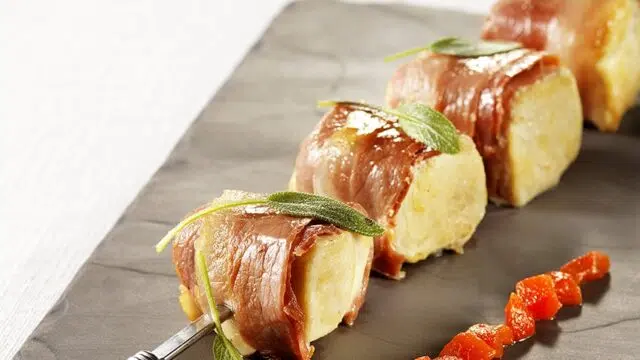 Troef: je kunt hetzelfde recept klaarmaken met spiesjes waarop je afwisselend blokjes watermeloen en meloen hebt gespiesd voor wat kleurenvariatie.