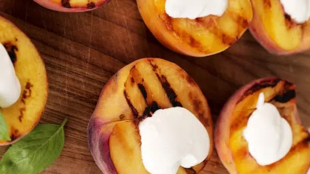 Nectarines op de barbecue en kokosroomijs