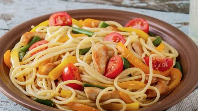 Spaghetti met kip en groenten