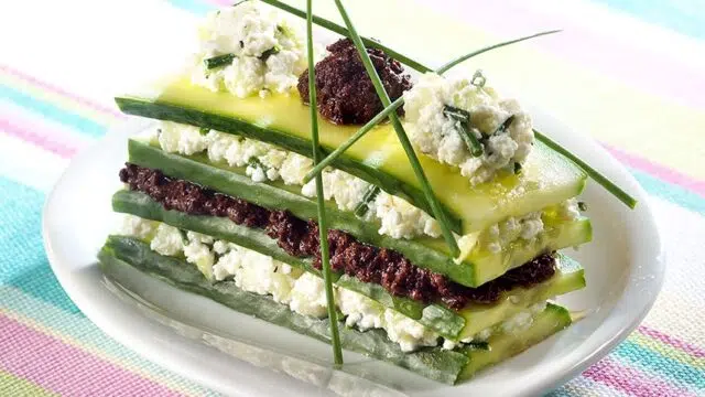 Millefeuille van komkommer en ricotta