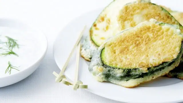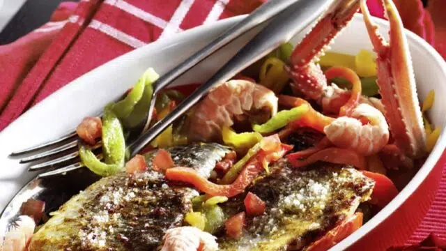 St.-Jacobsschelpen met karamel van balsemiek azijn en tagliatelle van courgettes met hazelnoot