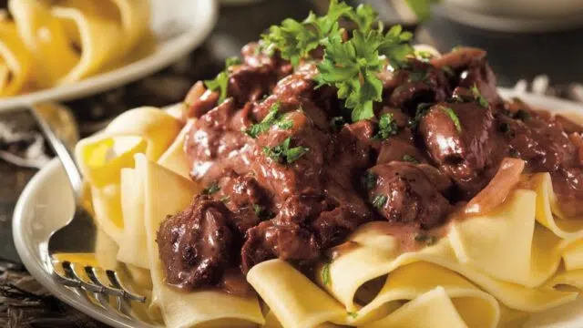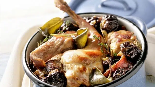 Hindegebraad, puree met hoeveboter en geglaceerde kleine groenten