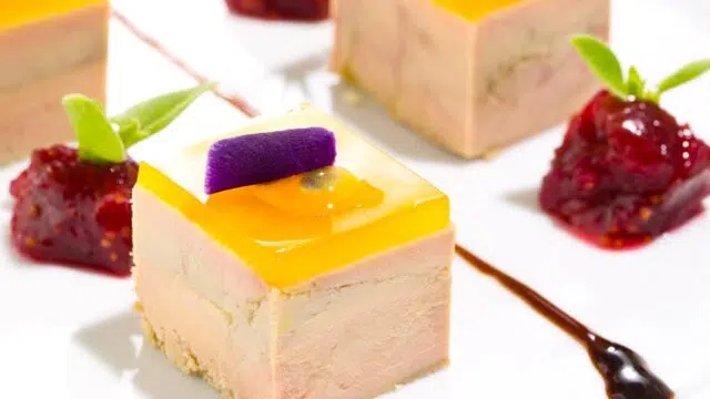 Cubes de foies gras à la gelée au Sauternes et au safran