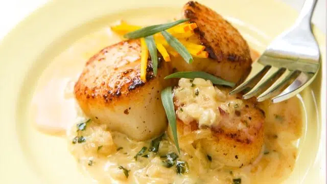 Noix de Saint Jacques, sauce à l’échalote et au vin jaune