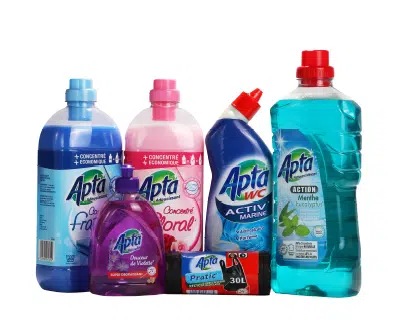 Apta, c’est la marque d’Intermarché qui prend soin de votre famille et de votre intérieur avec près de 200 références, dont une gamme écologique, une gamme « recettes d’Antan » et une gamme « Sain », composée à 97% d’ingrédients d’origine naturelle.. Nous vous proposons ainsi des produits efficaces pour répondre à tous vos besoins pour le lavage, l’entretien, la protection et l’ambiance de la maison.