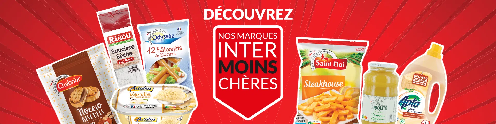 Chez Intermarché, nous vous proposons des produits de qualité à prix moins cher : les produits de nos marques InterMoinsChères tout simplement.