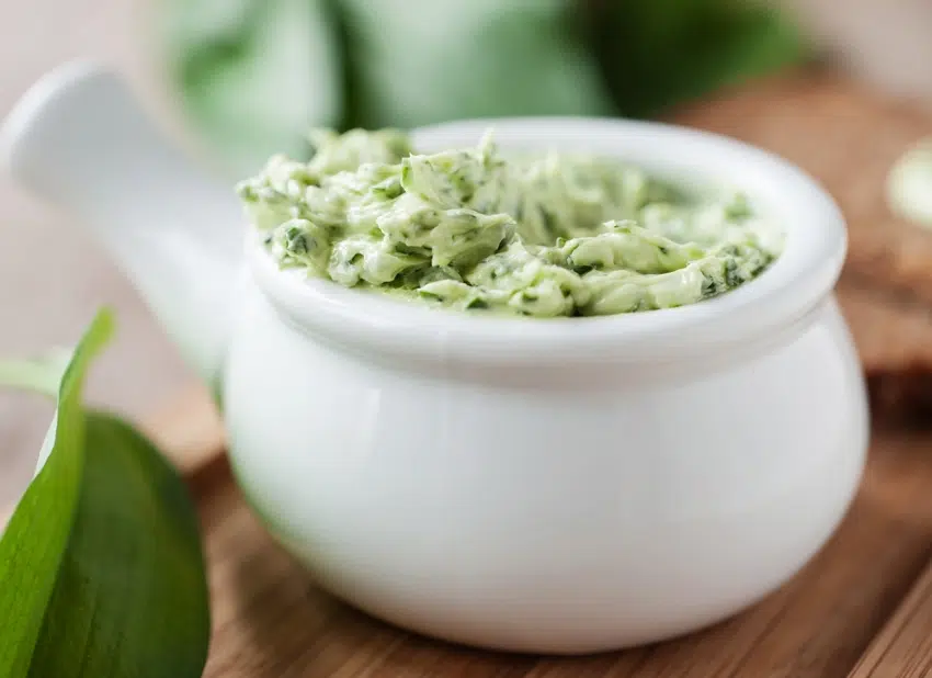 Mélangez la purée d’ail, le beurre, la moutarde et le persil. Salez, poivrez.