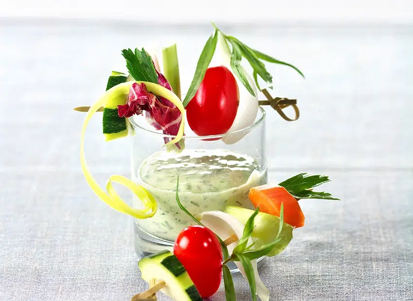 - 600 g de légumes crus au choix (concombre, céleri, tomates cerises, avocats, courgettes, carottes, etc.)
