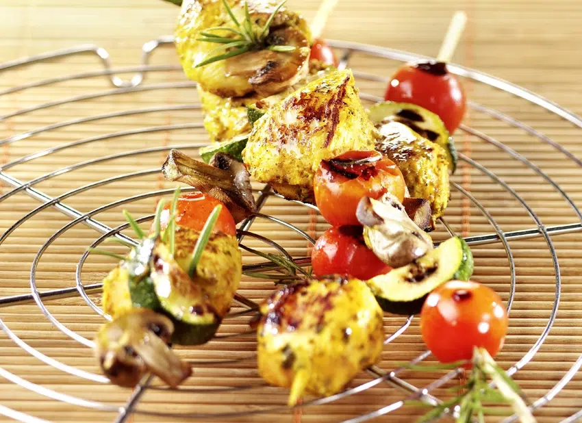 Brochettes de poulet mariné aux légumes
