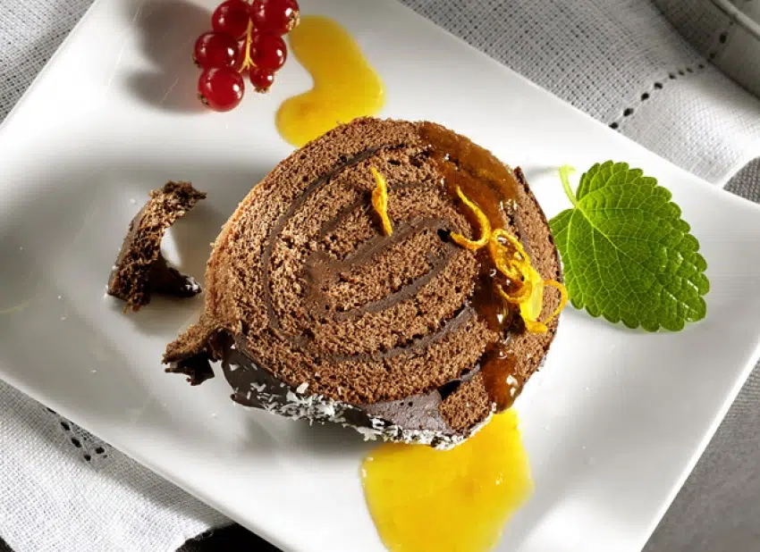 La bûche au chocolat et à l’orange est un dessert délicieux et parfumé, parfait pour les amateurs de cette combinaison de saveurs.