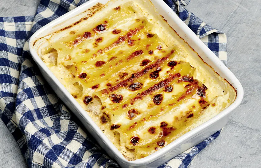 Cannelonis de champignons des bois gratinés à la sauce Mornay