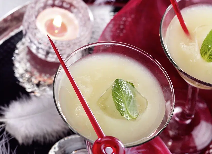 Servez avec un glaçon à la feuille de menthe