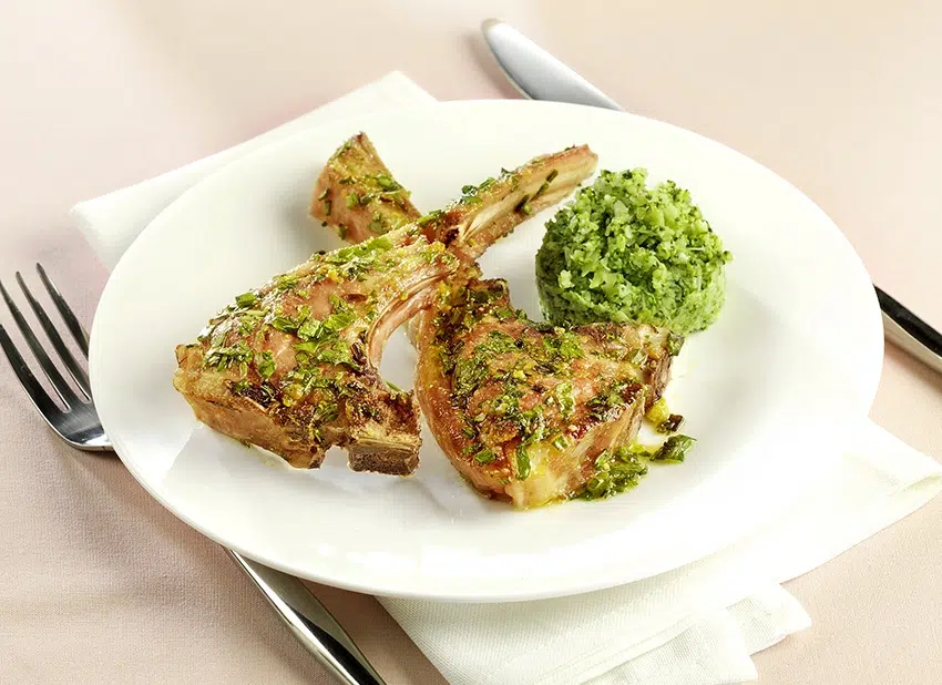Côtes d'agneau en croûte d'herbes pistachées