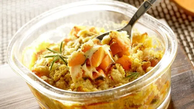 Couper le potiron en gros cube, sans l’éplucher. Rôtir les cubes de potiron assaisonnés d’huile d’olive et de sel pendant 9 minutes dans un four préchauffé à 180°.